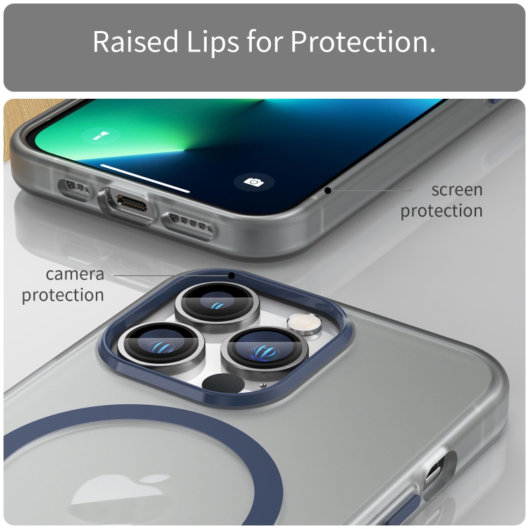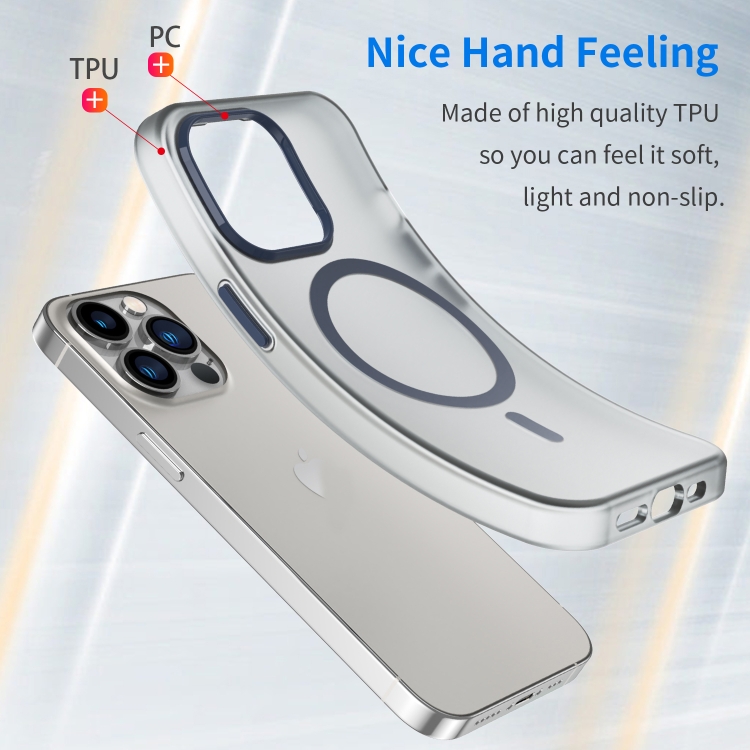 6. Material: marco de lente de PC + panel posterior de TPU translúcido mate + anillo de succión magnético inalámbrico