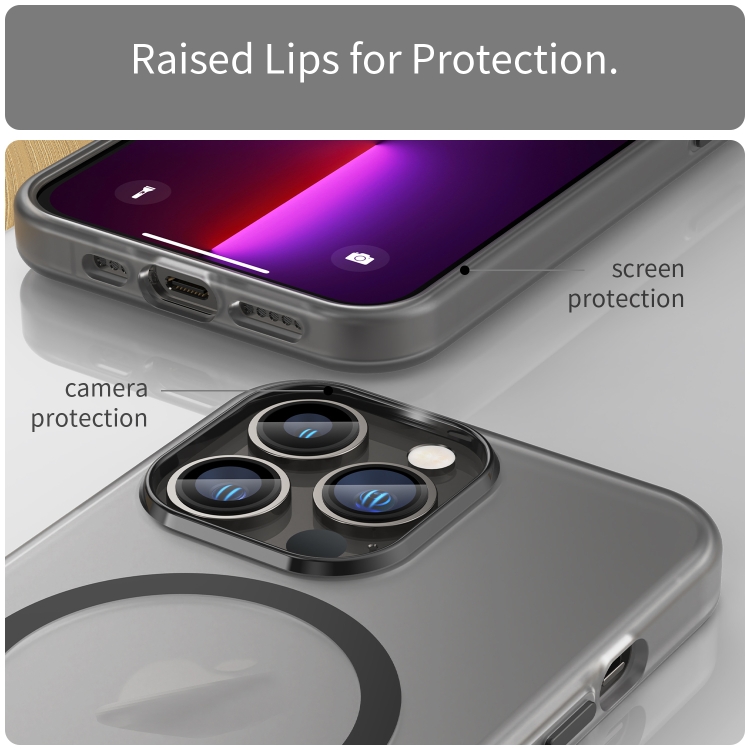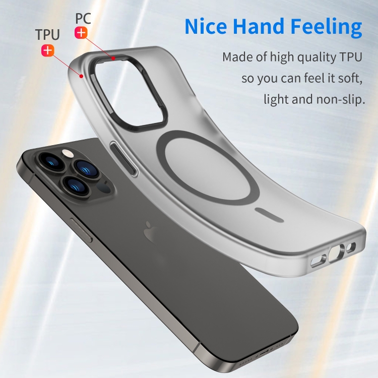 6. Material: marco de lente de PC + panel posterior de TPU translúcido mate + anillo de succión magnético inalámbrico