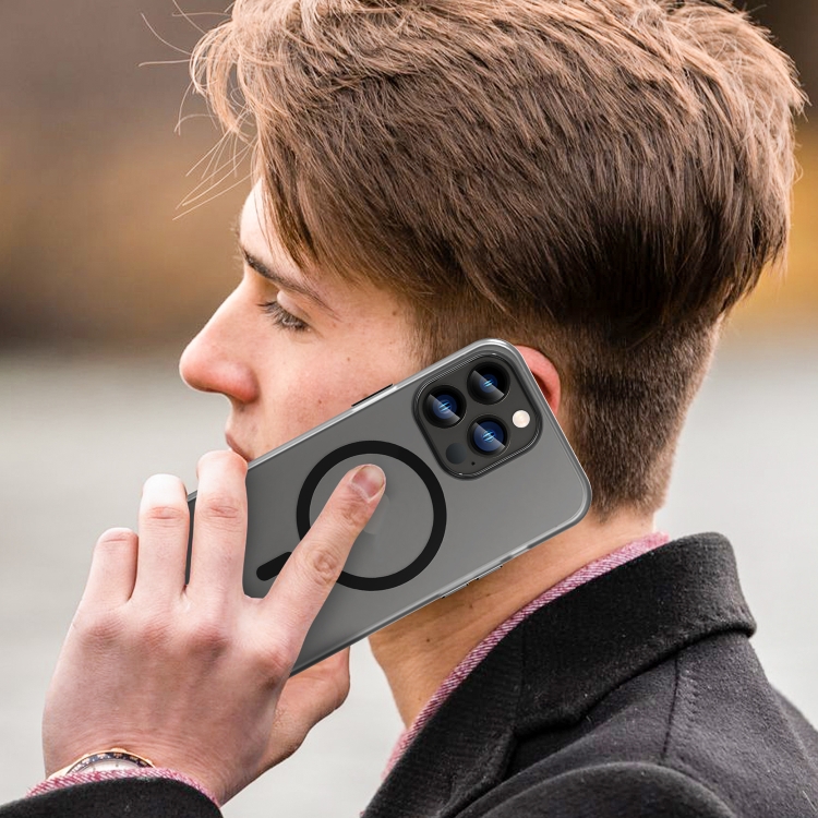 Funda para teléfono iPhone 13 Pro Magsafe Frosted Translucent TPU + PC Cobertura Total (Negro)
