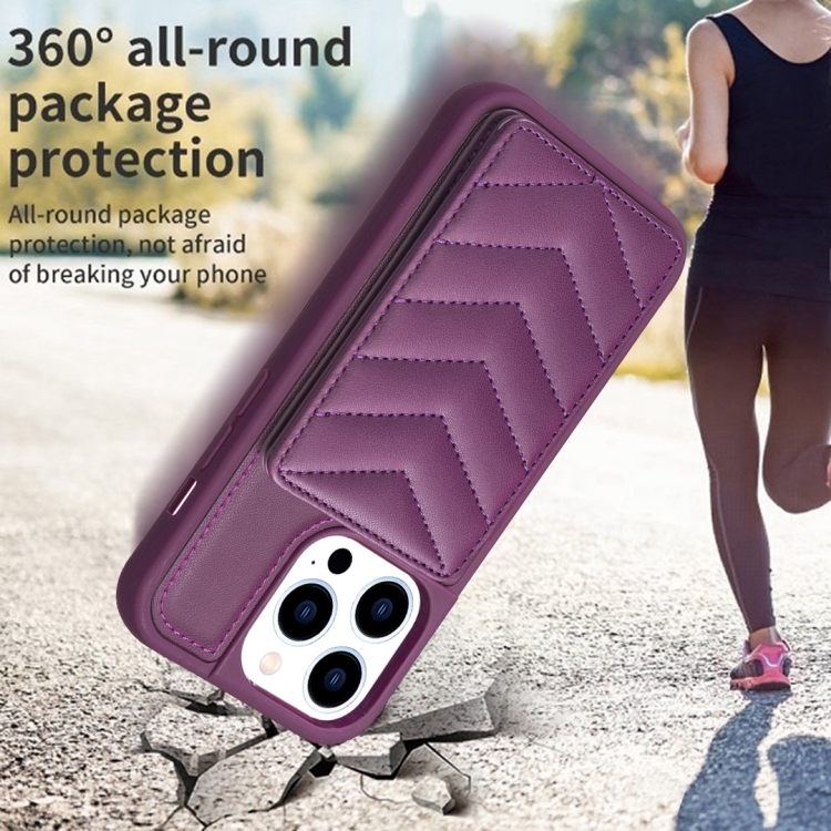 Funda para teléfono Bf26 Wave Pattern para iPhone 13 Pro Max con soporte para tarjetas (Morado Oscuro)