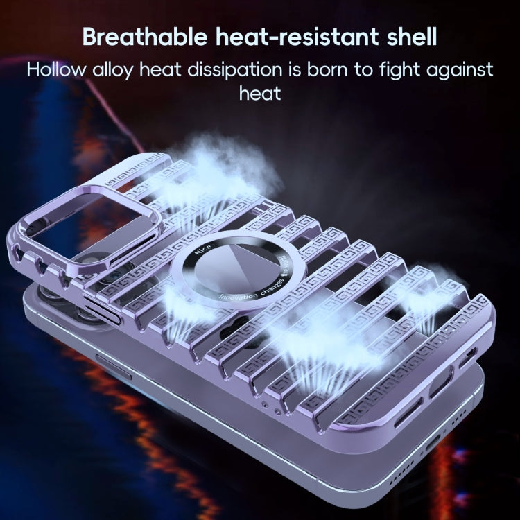 For iPhone 13 Pro Max Electroplated Hollow Phone Case with Cooling Ladder (Blue)