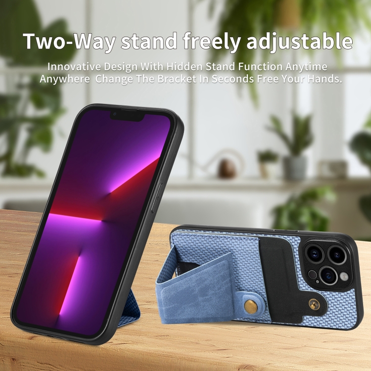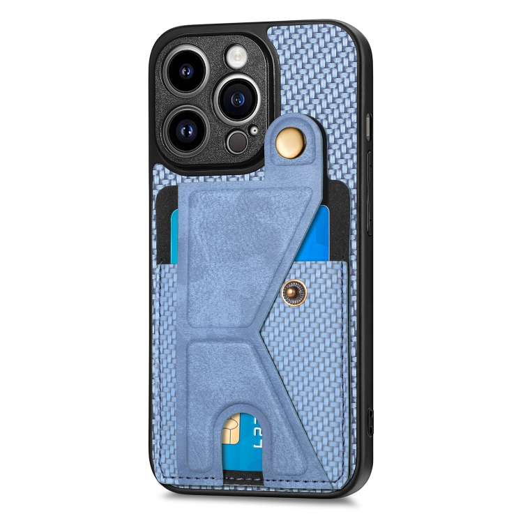 Funda para Teléfono iPhone 13 Pro Max Carbon Fiber Wallet Flip Card con Soporte en Forma de K (Azul)