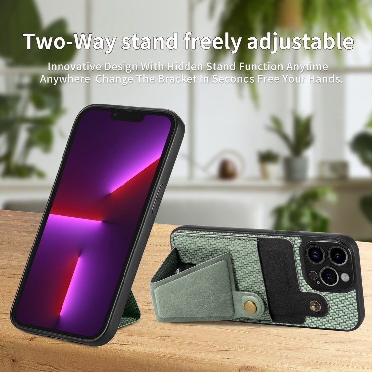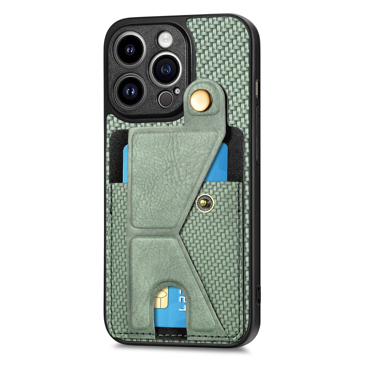 Funda para teléfono iPhone 13 Pro Max Carbon Fiber Wallet Flip Card con Soporte en Forma de K (Verde)