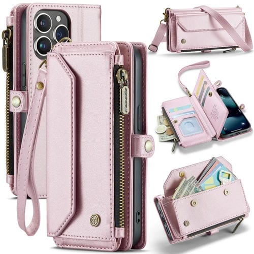 Funda para iPhone 13 Pro Max Caseme C36 Cartera con Ranuras para Tarjetas y Cremallera Antirrobo Rfid (Rosa)
