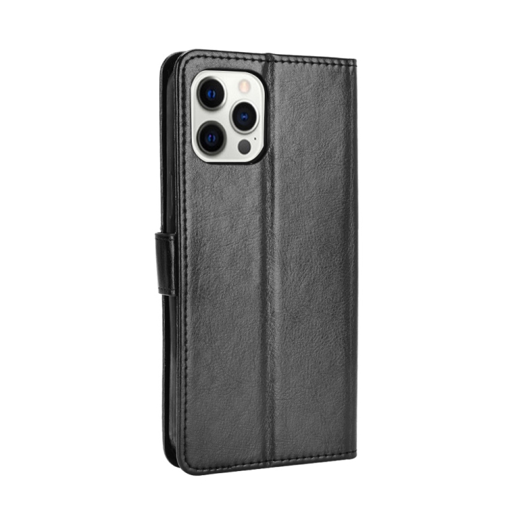 Funda de Cuero para iPhone 13 Pro Max Crazy Horse Texture con Tapa Horizontal Soporte Ranuras y Cordón (Negro)