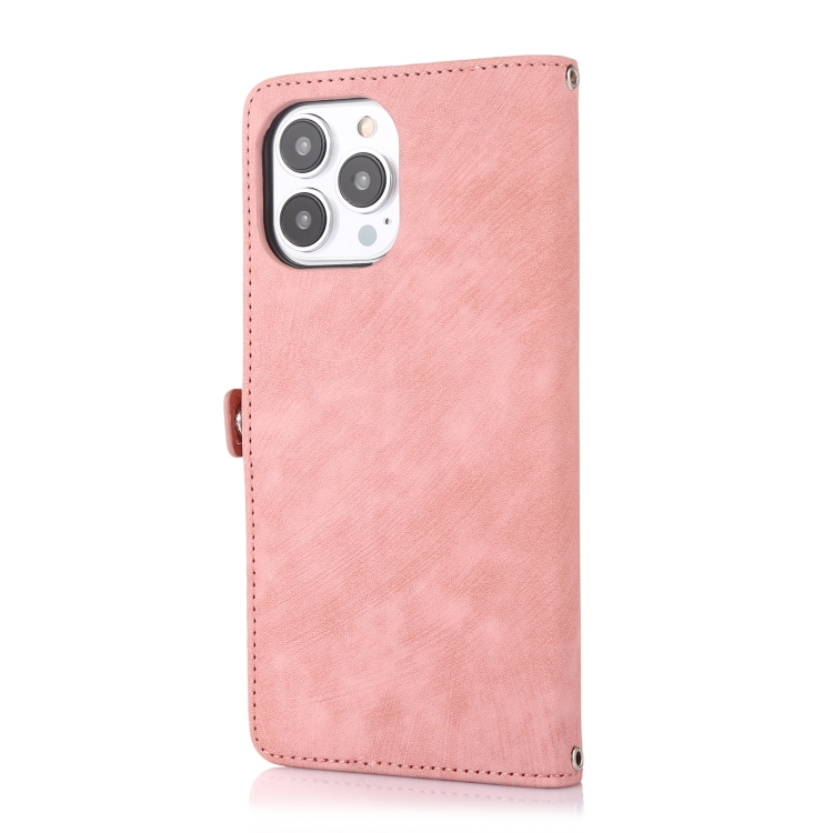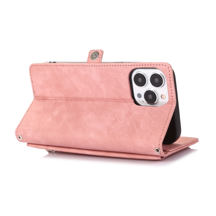 Funda para iPhone 13 Pro Max Monedero de Cuero con Cremallera y Ranura para Tarjeta (Rosa)