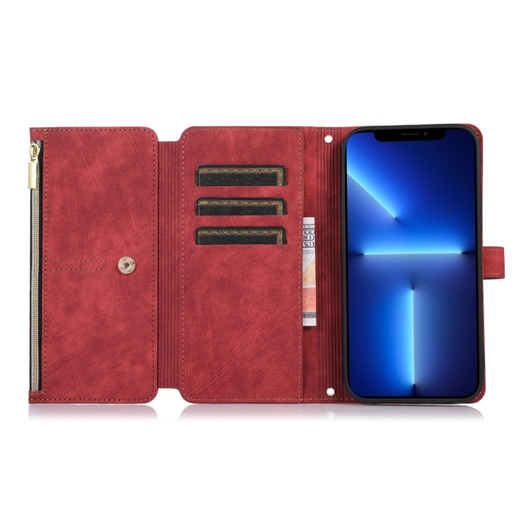 Funda para iPhone 13 Pro Max Dream 9-Card Wallet Zipper Bag de Cuero (Rojo)