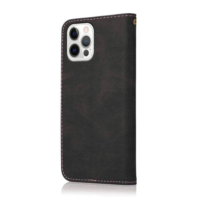 Estuche de Teléfono Cuero para iPhone 13 Pro Max con Costuras de Dos Colores (Oro Rosa Negro)