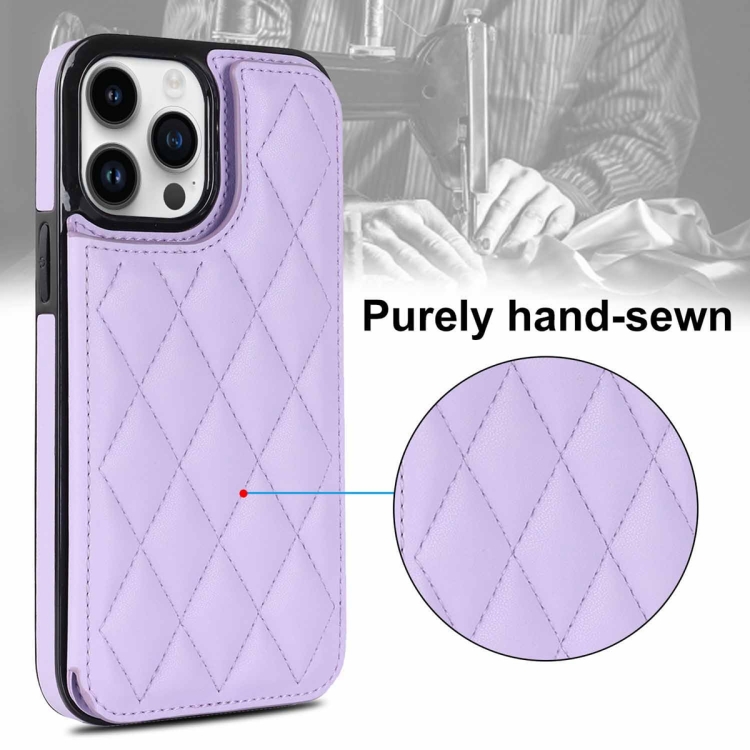 Estuche de teléfono iPhone 13 Pro Max Cuero Pu Rombal con doble hebilla (Púrpura)