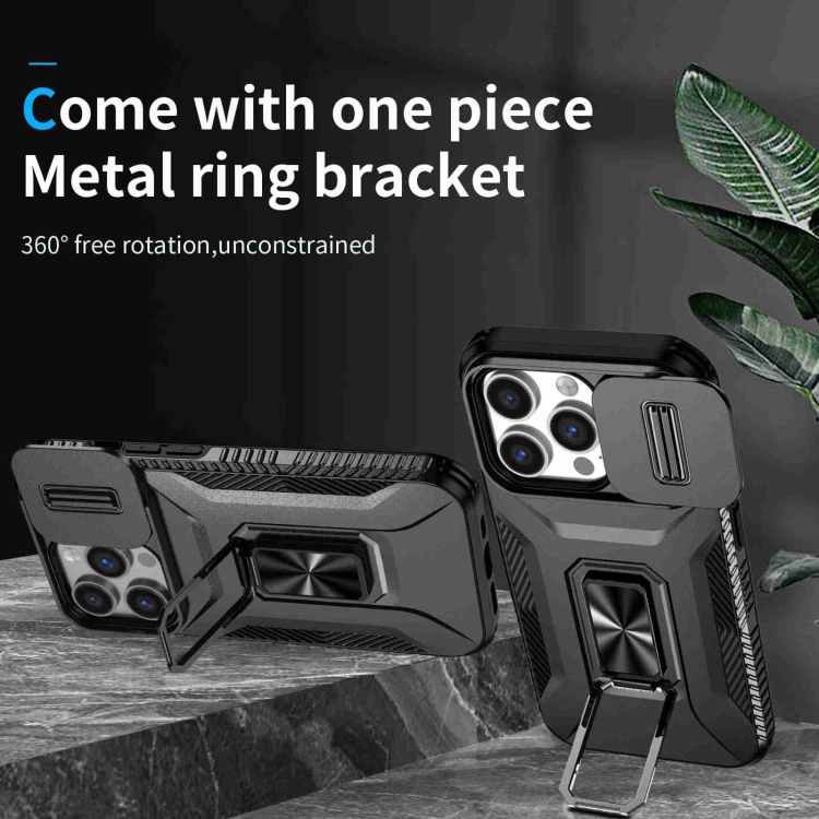For iPhone 13 Pro Max Phone Case with Cam Slider Holder (Black)