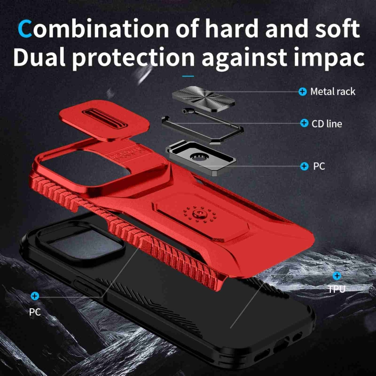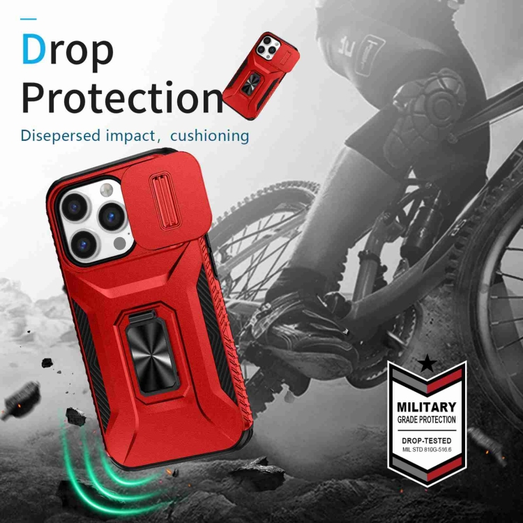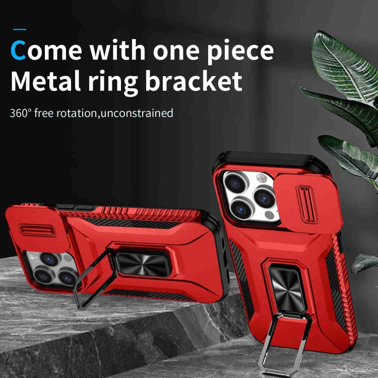 For iPhone 13 Pro Max Phone Case with Cam Slider Holder (Red)
