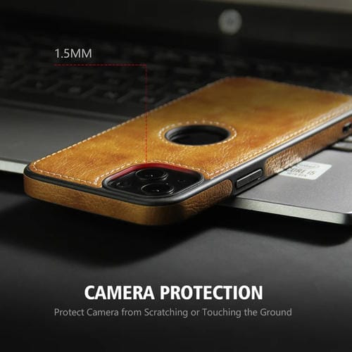 Funda de Teléfono iPhone 13 Pro Max Costuras Textura de Cuero (Marrón)