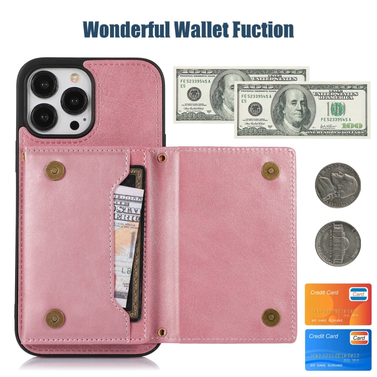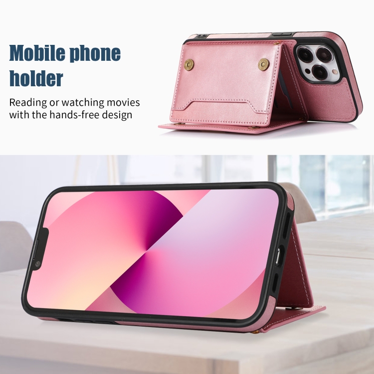 Funda de Teléfono iPhone 13 Pro Max Cuero Rfid Tres Pliegues con Cordón (Oro Rosa)
