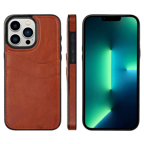 Funda para Teléfono iPhone 13 Pro Max Piel de Cuero Litchi con Ranuras para Tarjetas (Marrón)