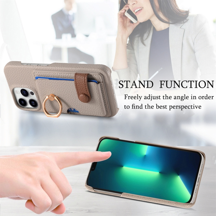 Funda para teléfono iPhone 13 Pro Max Litchi Leather Oil Edge Ring Card Back (Caqui)