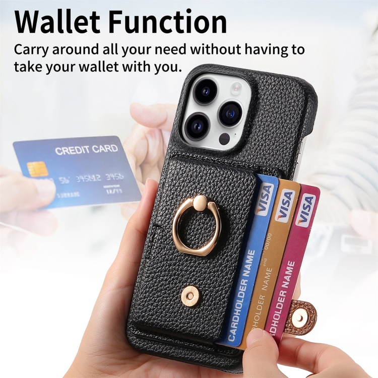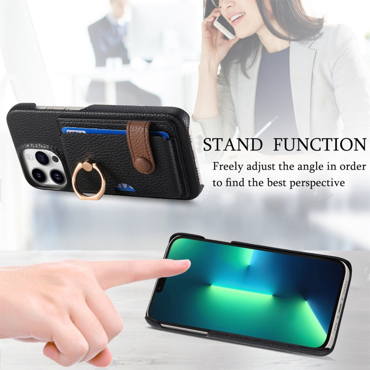 Funda para Teléfono iPhone 13 Pro Max Litchi Leather Oil Edge Ring Card Back (Negro)