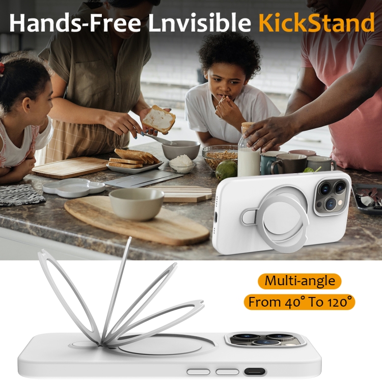 Funda para Teléfono iPhone 13 Pro Max Silicona Líquida Magnética con Soporte para Anillo (Blanco)