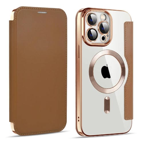 Funda para iPhone 13 Pro Max Magsafe Magnético Rfid Cuero Antirrobo (Marrón)