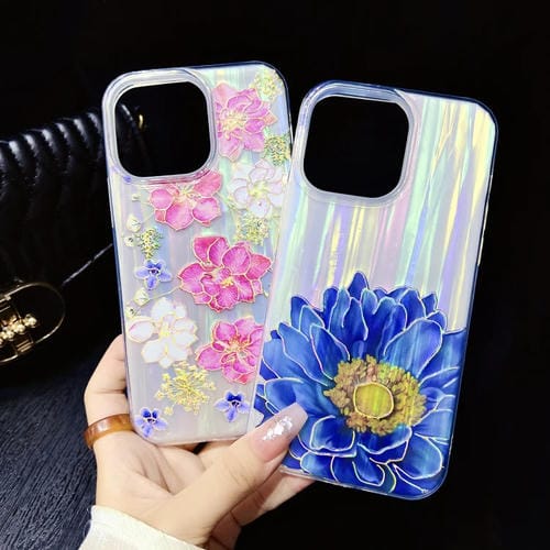 Protector de Pantalla + Funda para iPhone 13 Pro Max Película Galvanizada TPU y PC (Flores de Oro Negro)
