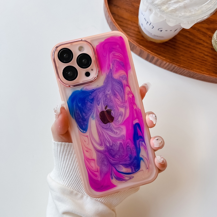 Funda para iPhone 13 Pro Max TPU Pintura al Óleo Galvanoplastia (Rosa)