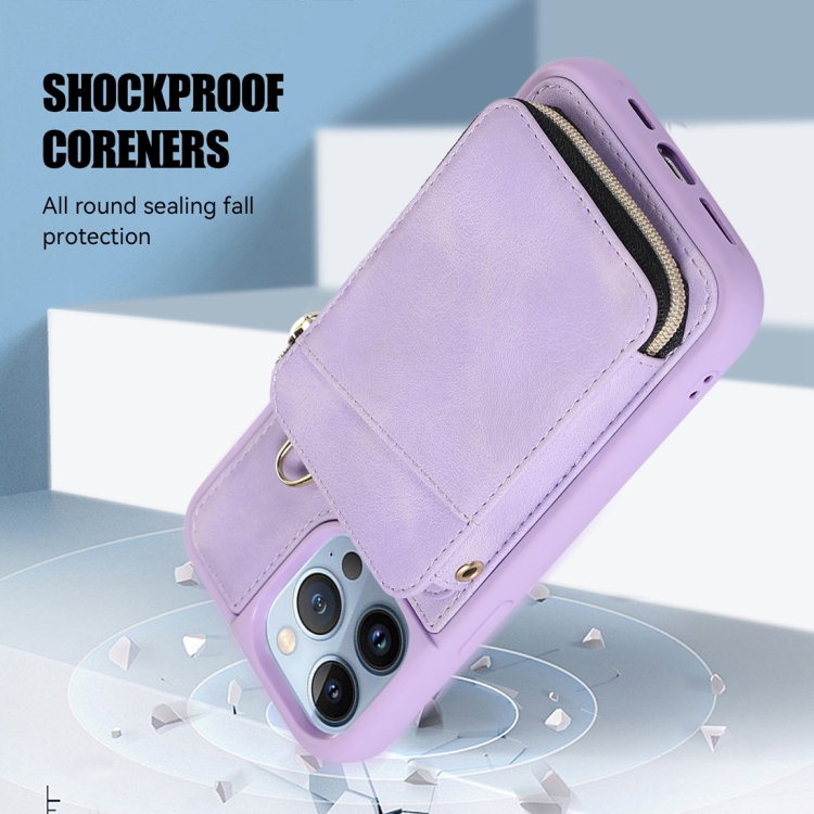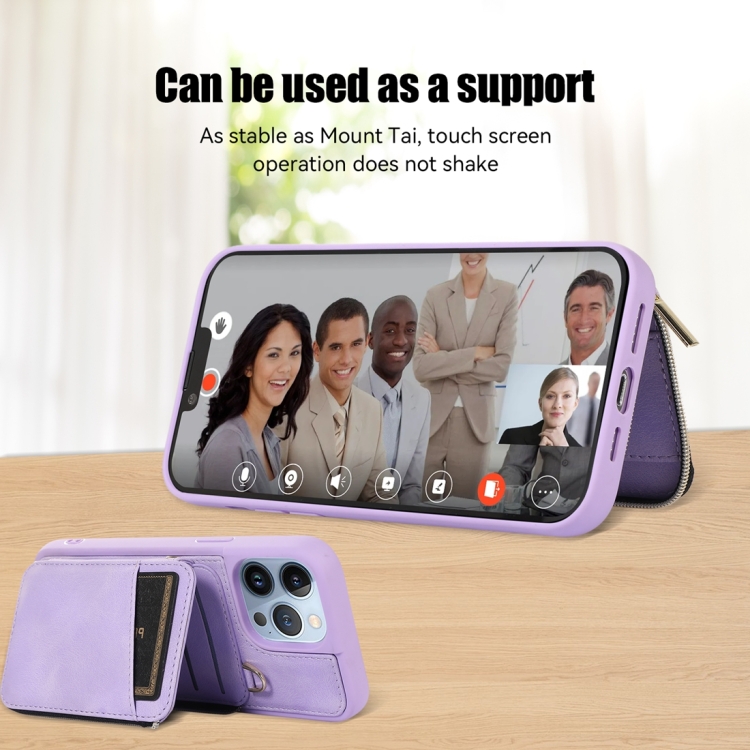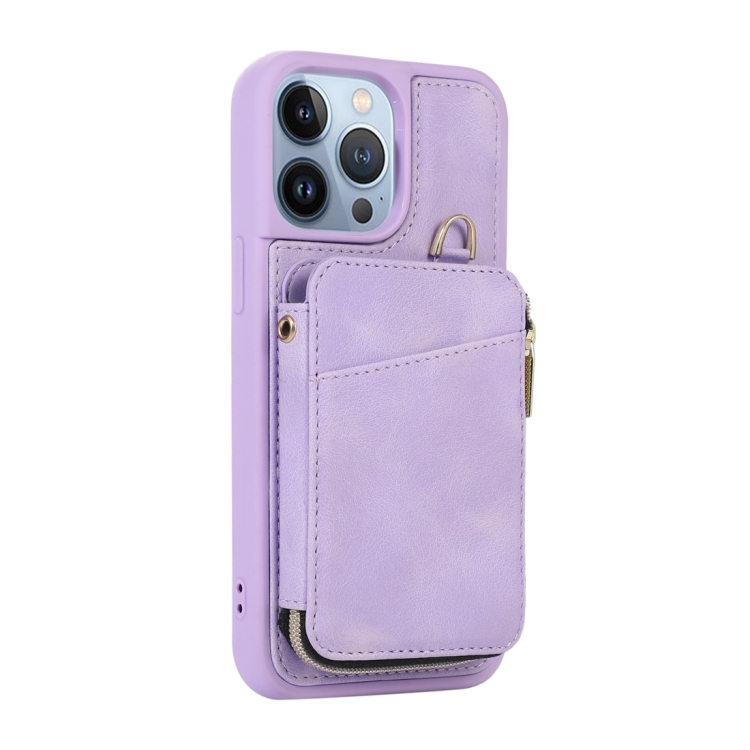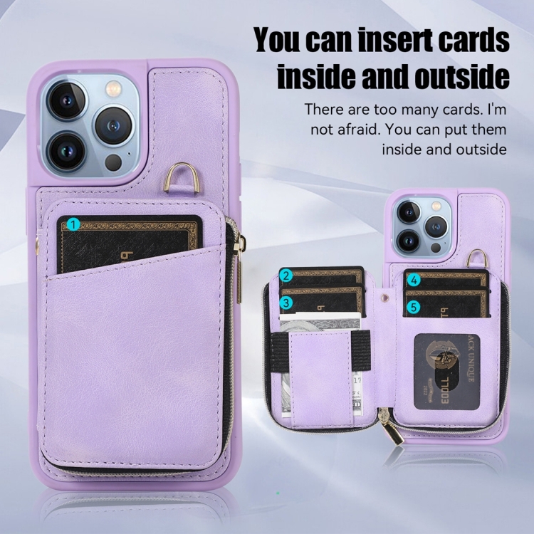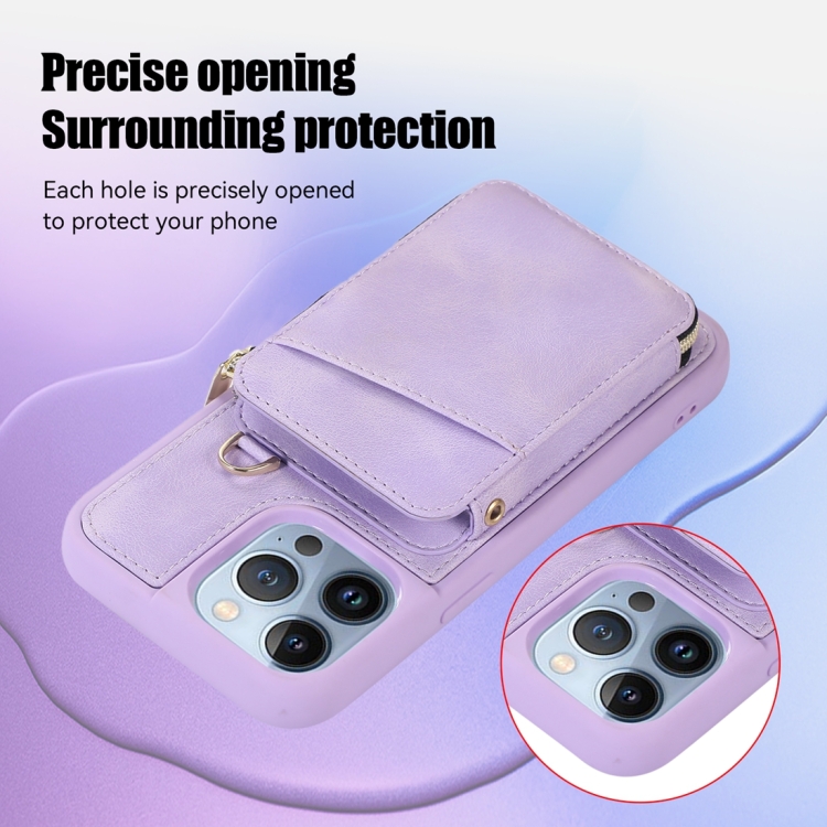 Funda para Teléfono iPhone 13 Pro Max Zipper Card Bag Contraportada (Púrpura)