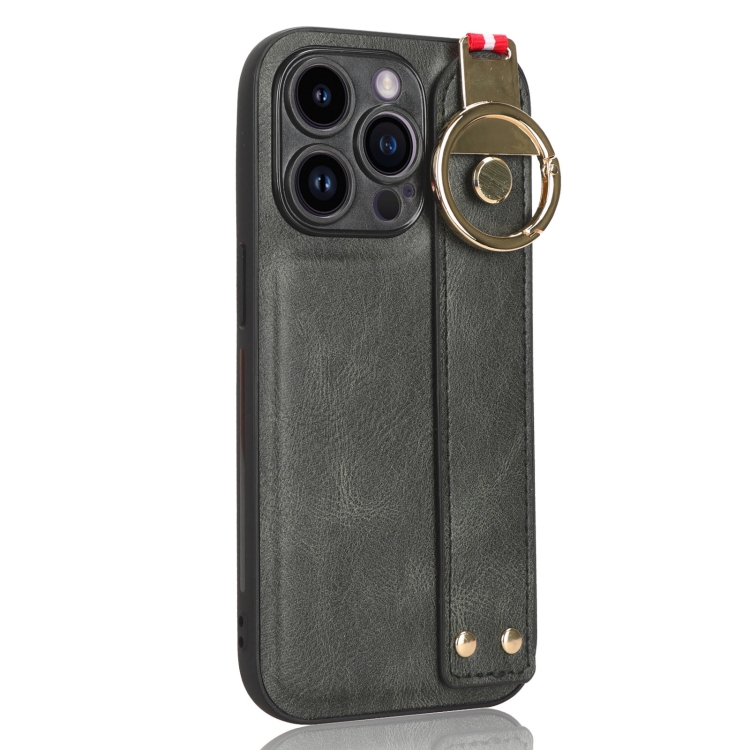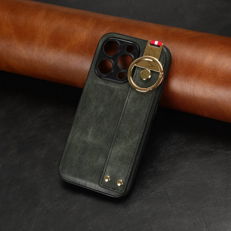 Funda Trasera Muñequera para iPhone 13 Pro de Cuero (Verde)