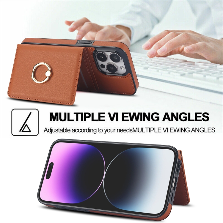 Estuche para Teléfono iPhone 13 Pro Rfid Tarjeta Antirrobo con Soporte para Anillo (Marrón)