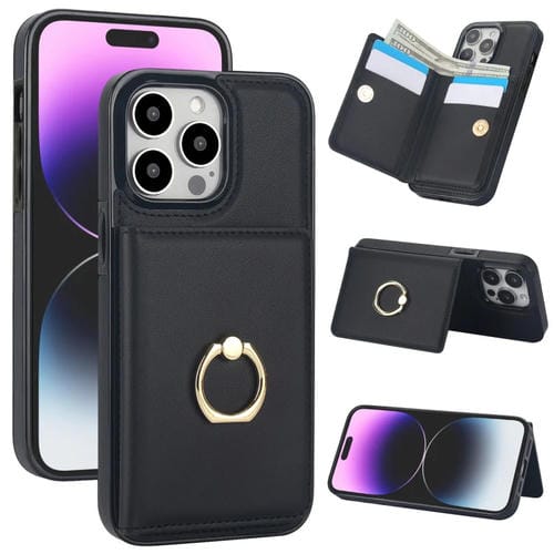Estuche para teléfono iPhone 13 Pro Rfid Tarjeta Antirrobo con Soporte para Anillo (Negro)