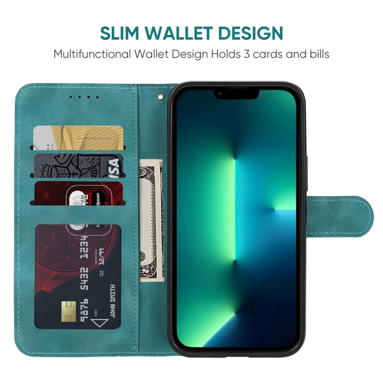 Funda para iPhone 13 Pro Skin Feel Cuero con Líneas Geométricas (Verde)