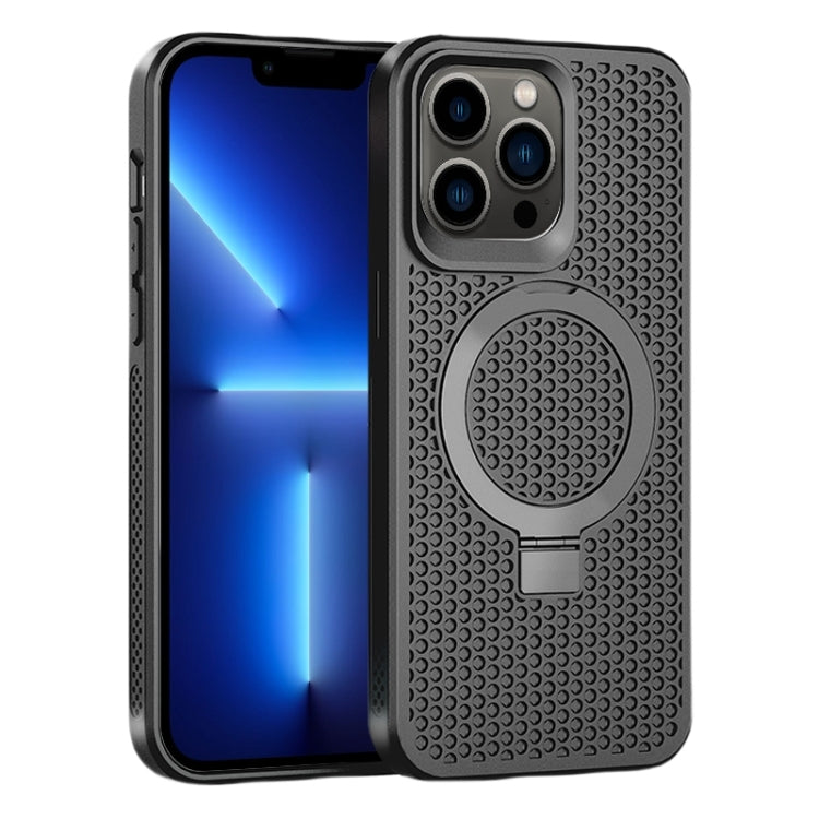 For iPhone 13 Pro Skin Feel PC+TPU Magnetic Magsafe Phone Case with Cooling and Kickstand(Black)