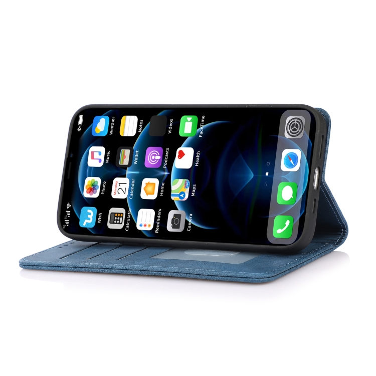 Funda para iPhone 13 Pro Strong Magnetic Crazy Horse Texture Cuero con Tapa Horizontal Soporte y Ranuras para Tarjetas (Azul)