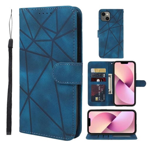 For iPhone 13 Skin Feel Geometric Lines Leather Phone Case (Blue)
