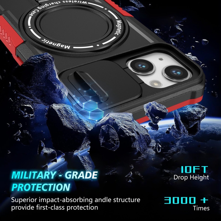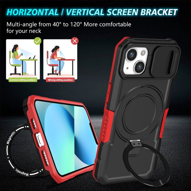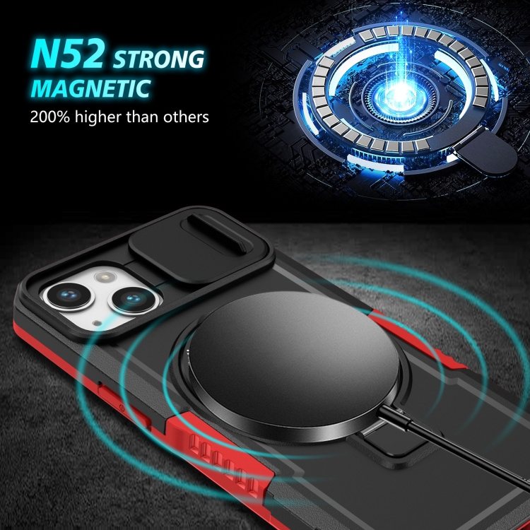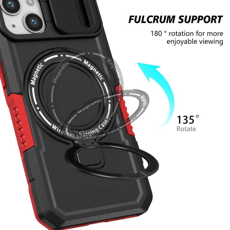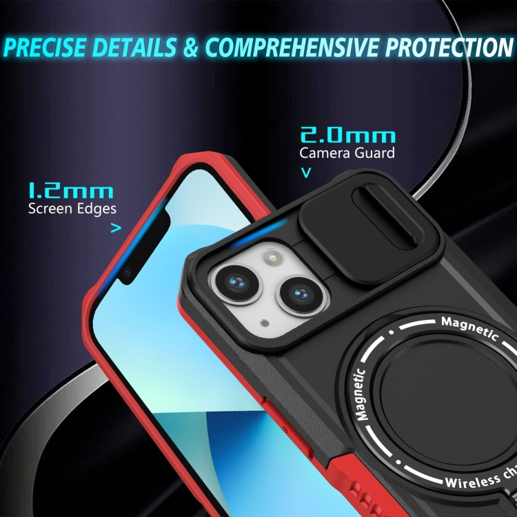 Funda para Teléfono iPhone 13 Sliding Camshield Magsafe Holder TPU Hybrid (Negro Rojo)
