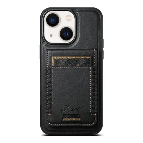 For iPhone 13 Suteni H17 Oil Eax Leather MagSafe Detachable Wallet Phone Case (Black)