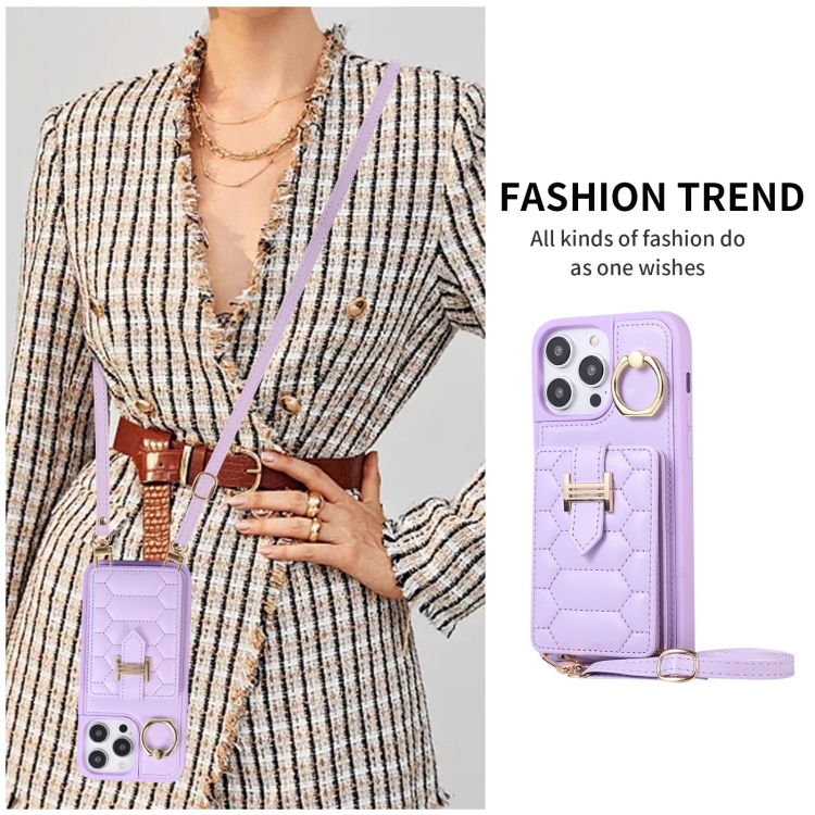 Funda para iPhone 13 Vertical Card Bag Ring Holder con Doble Cordón (Púrpura)