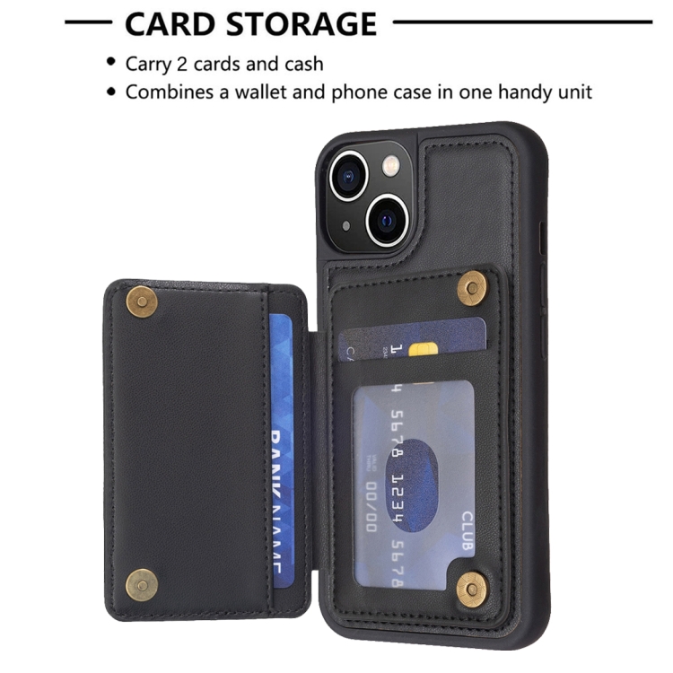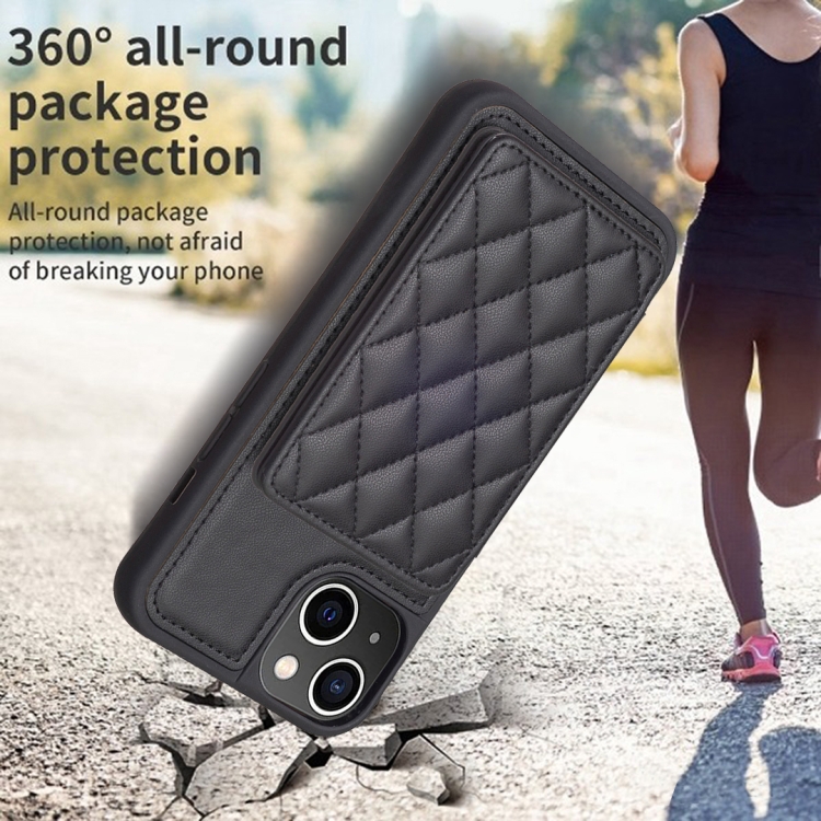 Funda para iPhone 14/13 Bf25 Square Plaid Porta Tarjetas Bolsa Negro