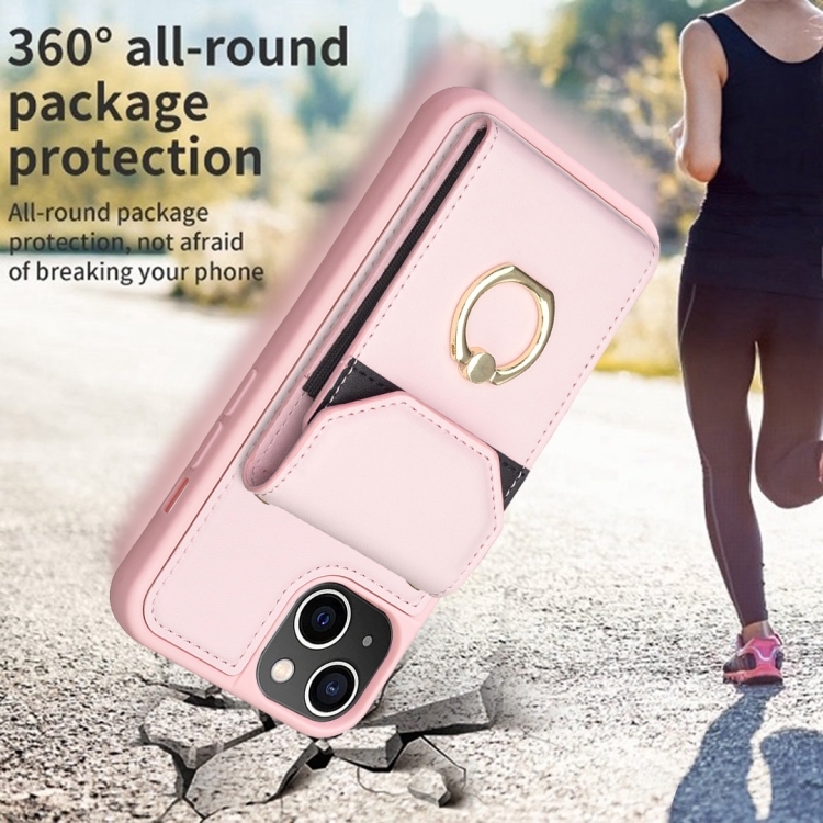 Funda para Teléfono Bf29 para iPhone 14/13 con Soporte para Anillo y Bolsa para Tarjeta de Órgano (Rosa)