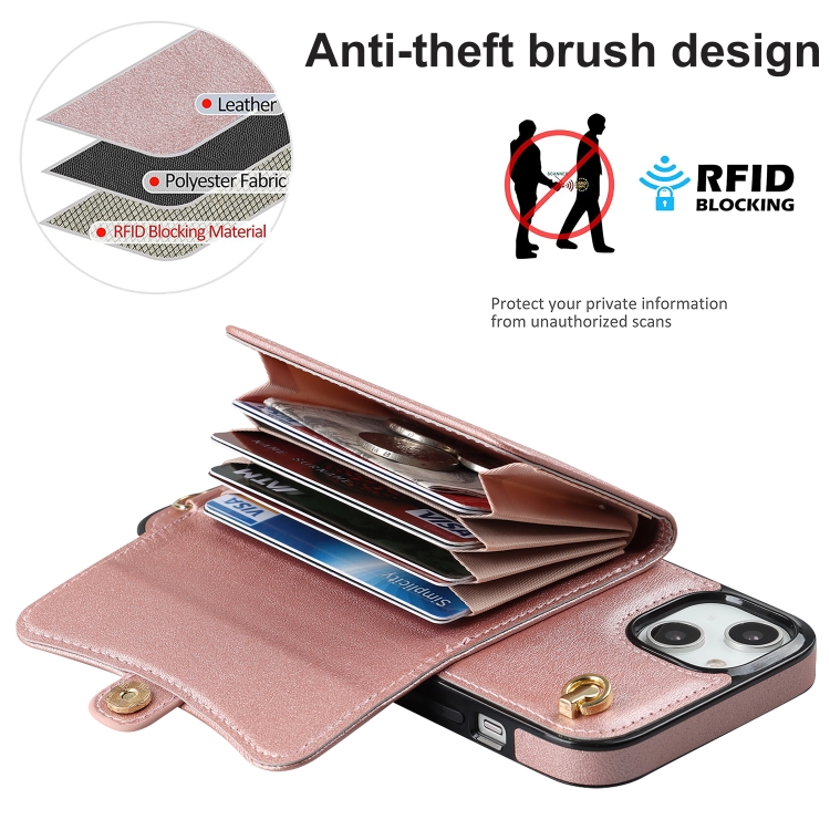 Estuche para Teléfono iPhone 14/13 con Ranura para Tarjeta RFID y Cordón Largo (Oro Rosa)