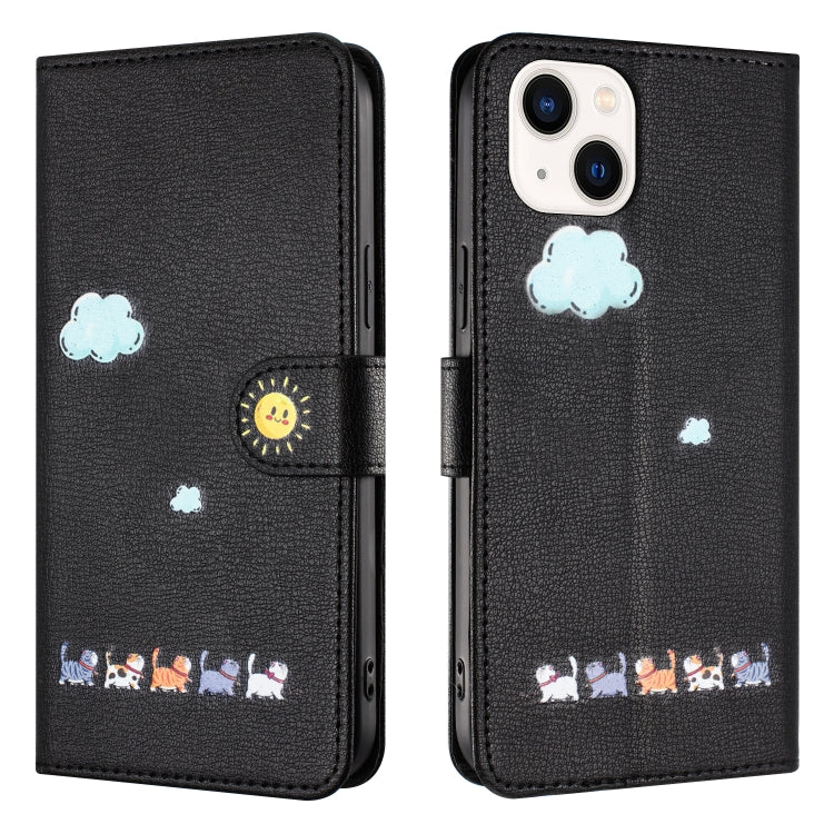 Funda para Teléfono iPhone 14/13 Cuero Gatos Dibujos Animados (Negro)