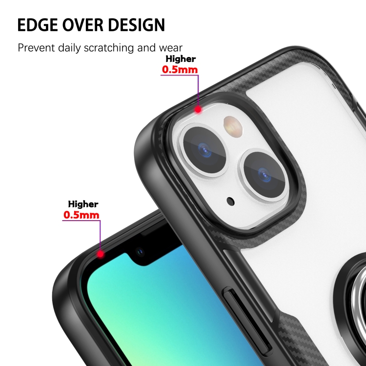 Funda para iPhone 14 TPU + Acrílico con Soporte para Anillo a Prueba de Golpes (Negro)