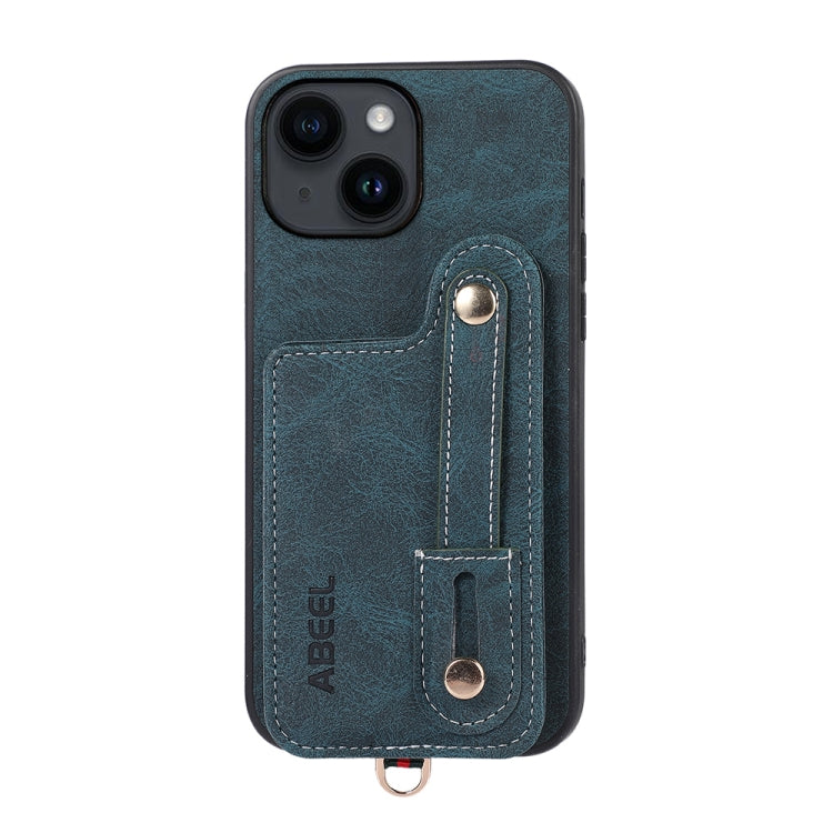 Funda para iPhone 14 Abeel Litchi Texture Card Bag PU Phone Case (Azul)