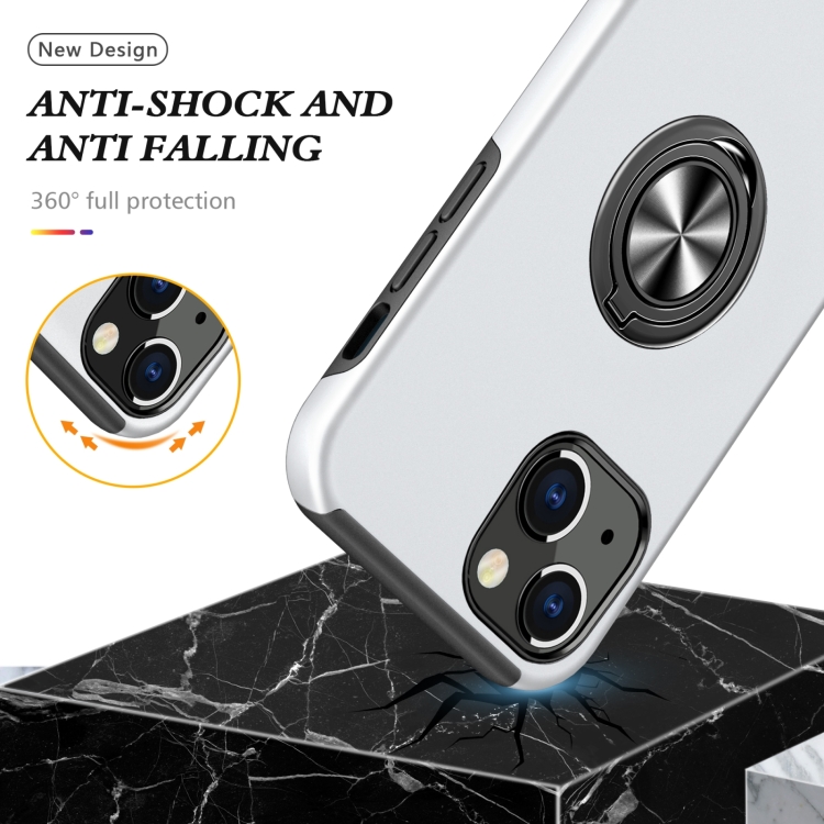 Funda para iPhone 14 Anillo Magnético Kickstand a Prueba de Golpes (Plata)