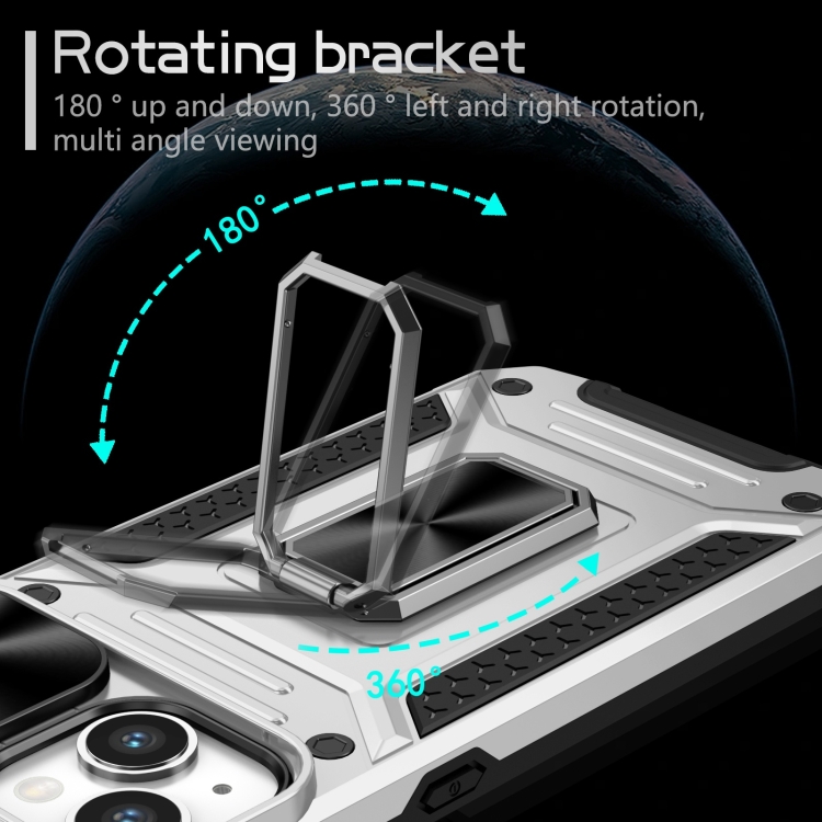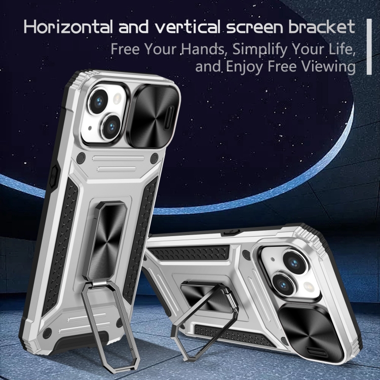 Funda para iPhone 14 Camshield Robot TPU Hybrid PC Phone Case (Plata)
