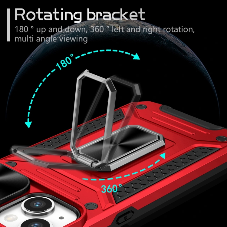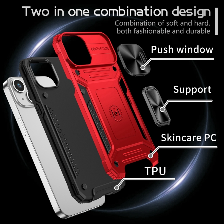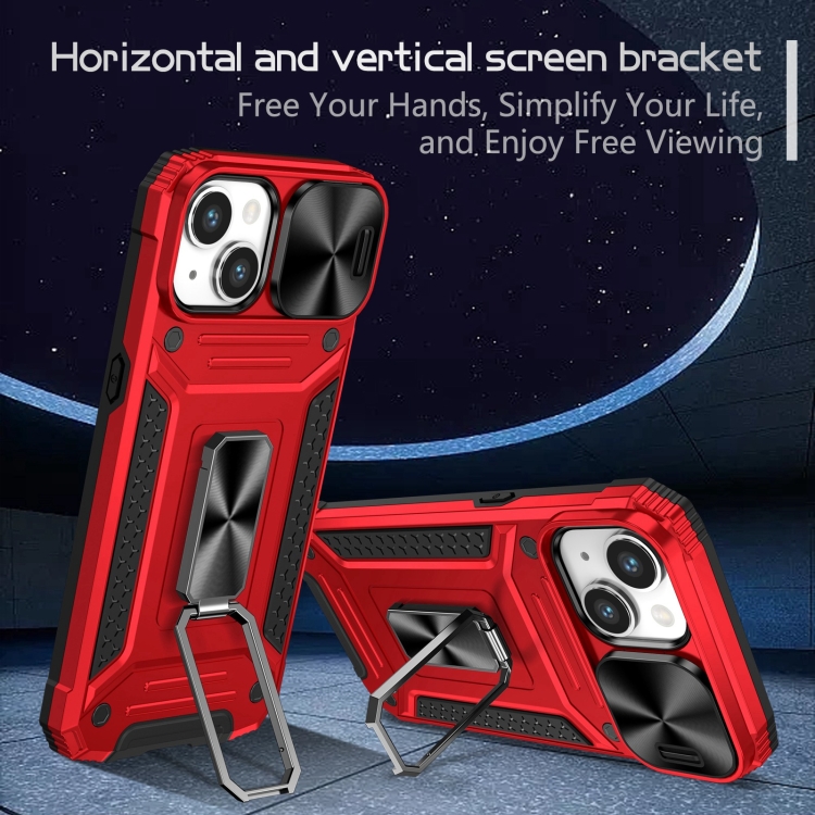 Funda para iPhone 14 Camshield Robot TPU Hybrid PC Protección (Rojo)