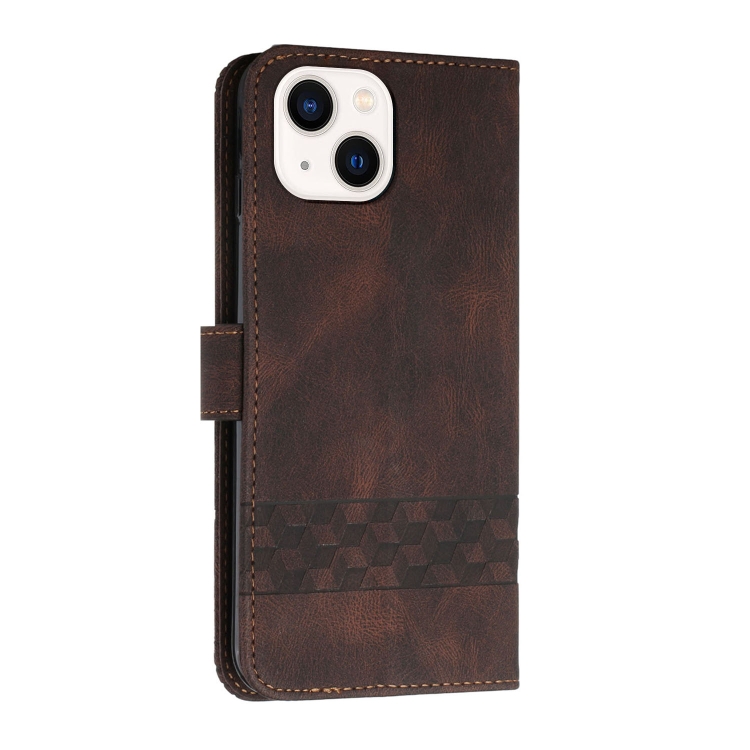 Funda para Teléfono iPhone 14 Cubic Skin Feel Flip de Cuero (Marrón)