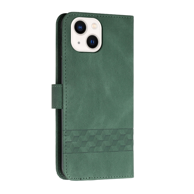Funda de Cuero para Teléfono iPhone 14 Cubic Skin Feel Flip (Verde)