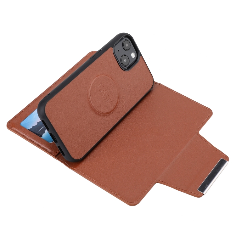 Estuche de Cuero Magnético Separable para iPhone 14 (Marrón)