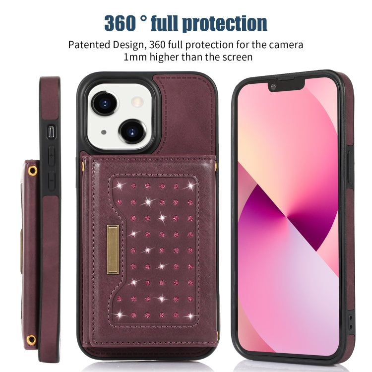 For iPhone 14 Tri-fold RFID Leather Phone Case with Lanyard (Red)