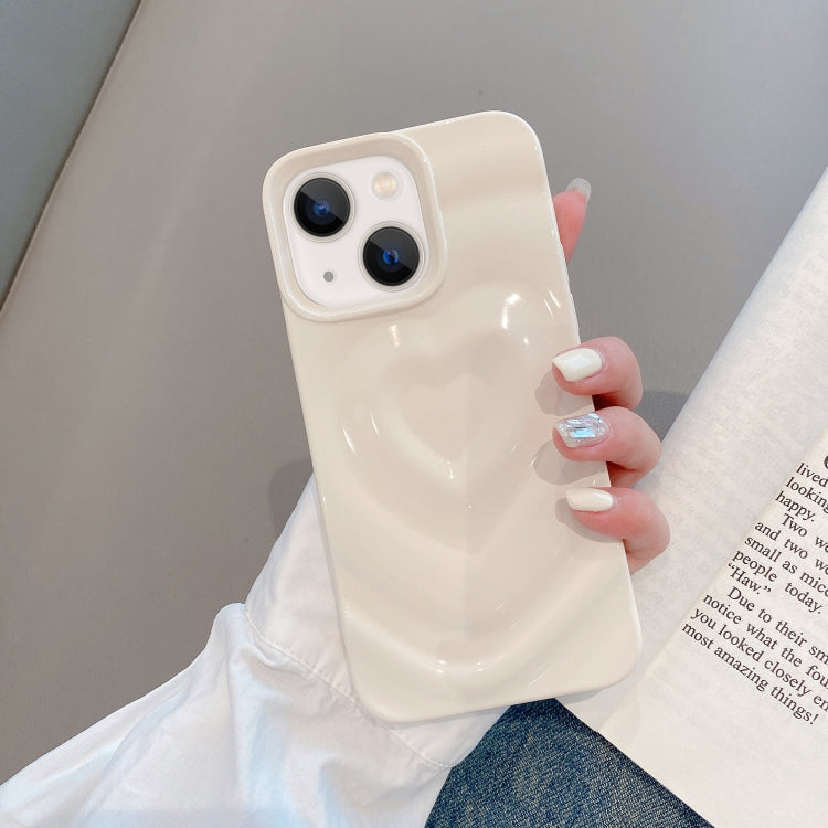 Estuche para Teléfono iPhone 14 con Patrón de Amor 3D (Blanco Crema)