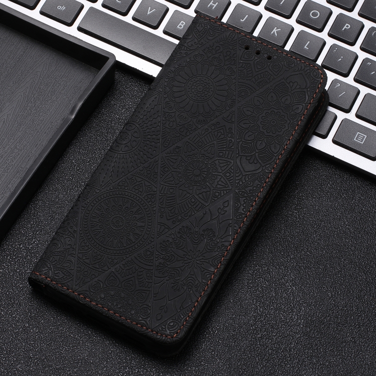 Estuche para Teléfono iPhone 14 Cuero Adsorción en Relieve Étnico (Negro)